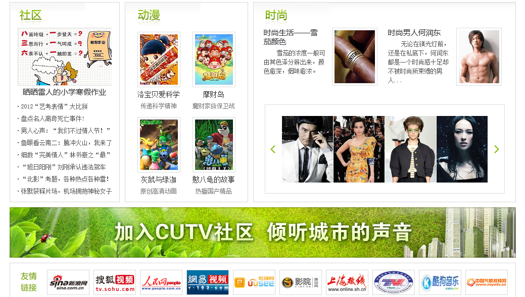 这是继央视筹建国家网络电视台(以下简称“CNTV”)之后,由广电系所打造的又一个网络电视台。 目前,新媒体联合体成员达到42家,CUTV旗下传媒网络已覆盖全国22个省市、近8亿用户人群。与CNTV不同, CUTV是采用“公共节目平台+各联合开办单位节目分平台”的整体架构。