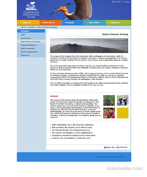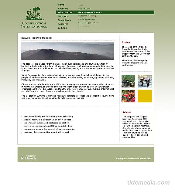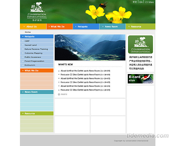 我们为这个组织在中国的推广提供的网站建设服务及技术支持,通过我们的在线的内容管理系统TideCMS与XHtml的结合,使这个网站在任何使用网络的地方都可以得到更新和维护,由于使用XHtml网页标准语言开发,这个网站会适应更多的访问环境与系统。力求让信息更加畅通……