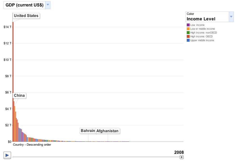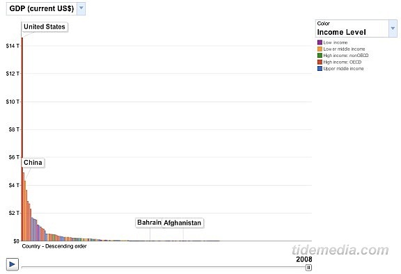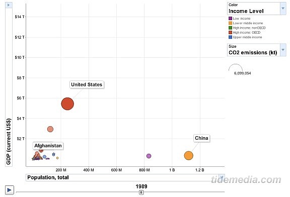 Google实验室的Public Data Explorer(公共数据浏览器)是以官方数据为基础,为一些常见的搜索请求制作图表,以更加直观的视觉形式反映搜索结果。强大的多维度图表系统提供了多维度的数据载体,XY轴、颜色、体积都可以附加关键的信息,这样便可以同时观察好几组数据,去发现他们之间的关系,了解趋势性信息。公共数据浏览器由Google与世界银行等数据统计机构合作推出。以下的浏览的截图。