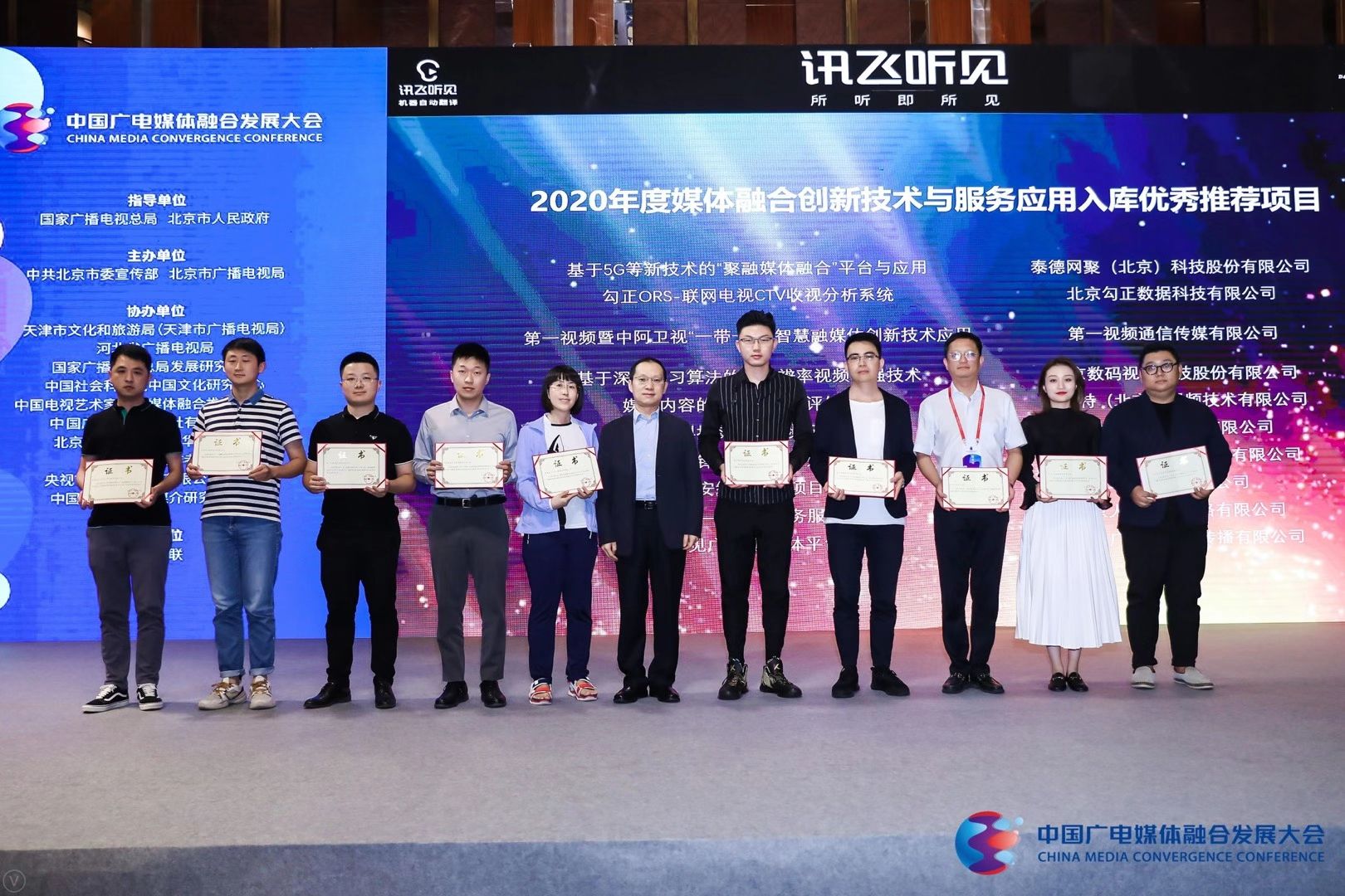 泰德网聚(北京)科技股份有限公司在中国广电媒体融合发展大会中荣膺“2020年度媒体融合创新技术与服务应用入库优秀推荐项目”奖项。