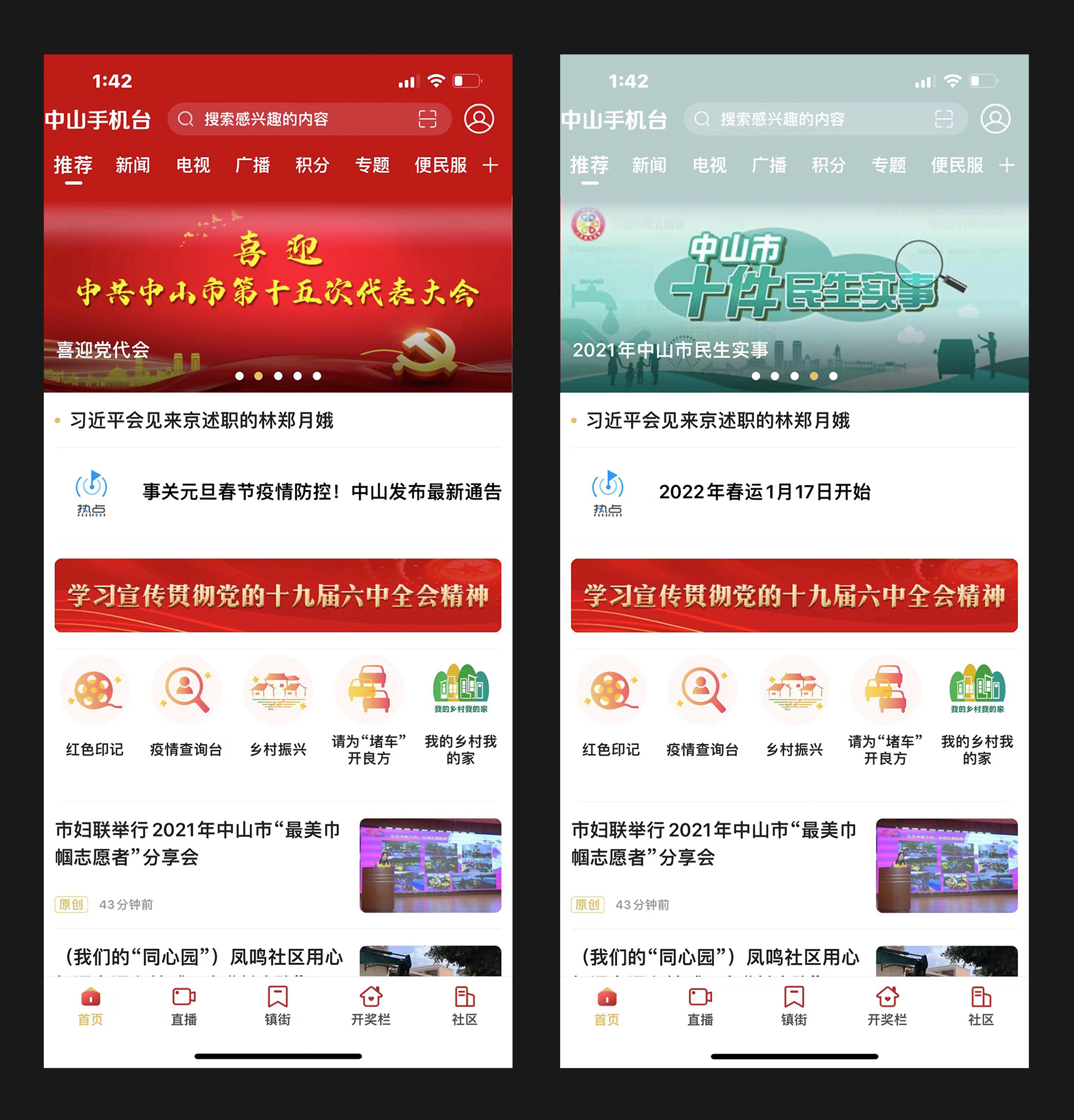 首页导航栏支持上传背景图或背景色;支持智能识别功能,导航栏背景可根据轮播图底色变化,满足多场景需求;支持一键变灰功能,满足清明节,国家公祭日等特殊哀悼类节日场景。