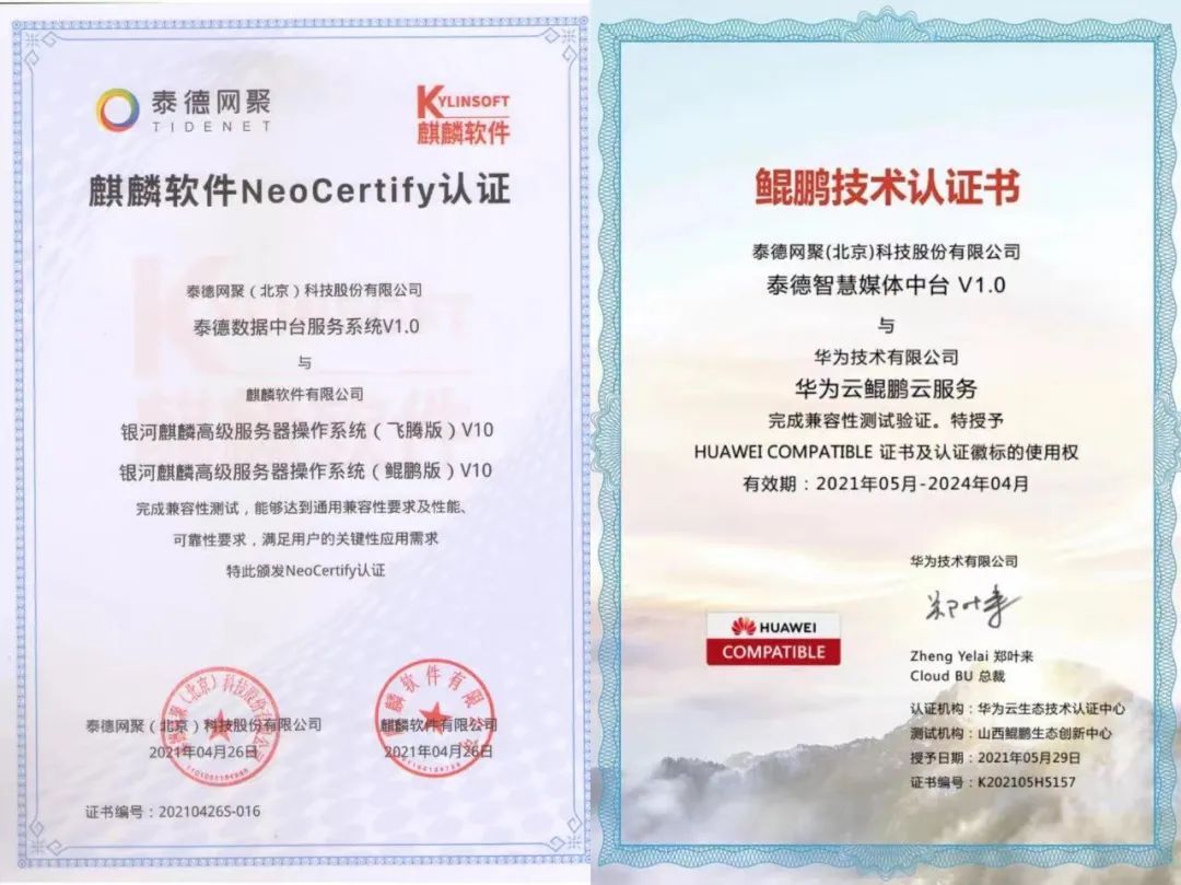 信创国产化方面,泰德网聚投入大量资深工程师,对操作系统、软件平台进行深度优化,现已实现“操作系统+数据库”全部国产化,全套的解决方案具备极高的性能优势和技术架构的前瞻性,是数字化转型国产化中的重要方案。泰德网聚自主研发的全栈产品、全系列产品均已分别通过银河麒麟NeoCertify认证和华为鲲鹏技术认证,并同步在进行中标麒麟、麒麟信安、中科方德等多个厂商的适配认证工作。