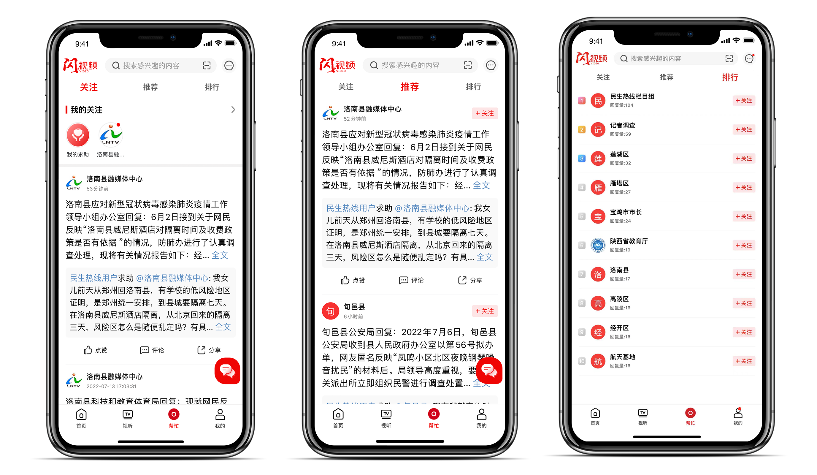 [帮忙号基于闪视频媒体号体系延展,能够面向用户帮忙诉求提供及时解答。通过闪视频客户端快速提出帮忙诉求并@相关帮忙号,帮忙号即可针对帮忙诉求进行解答及回复。帮忙号体系的应用,增加了用户民生诉求的新渠道,同时增强了闪视频客户端的用户粘性。]