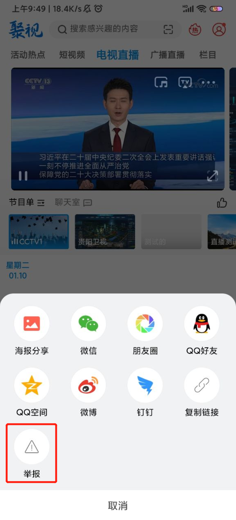 电视/广播详情页支持举报。