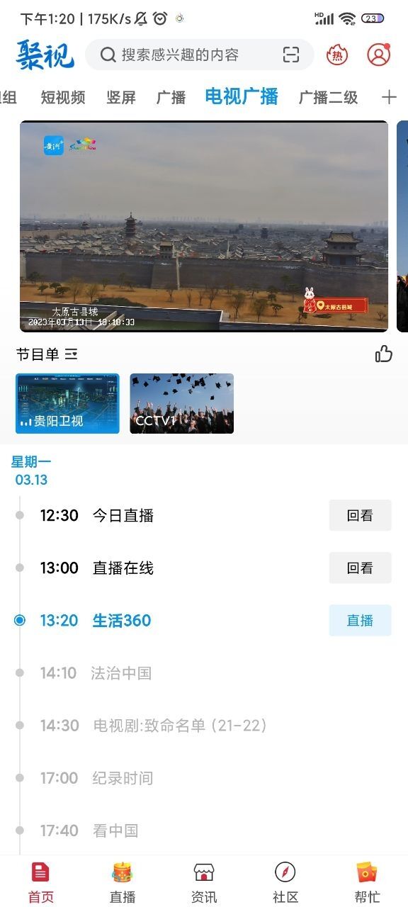 7、电视/广播支持配置在首页的二级栏目或底栏其它栏目