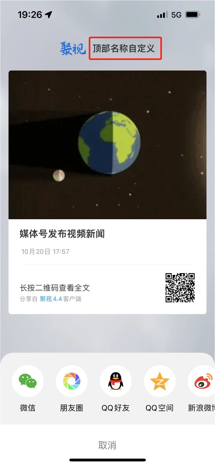 海报分享图顶部文字支持自定义,如未填写则按“APP名称”显示。