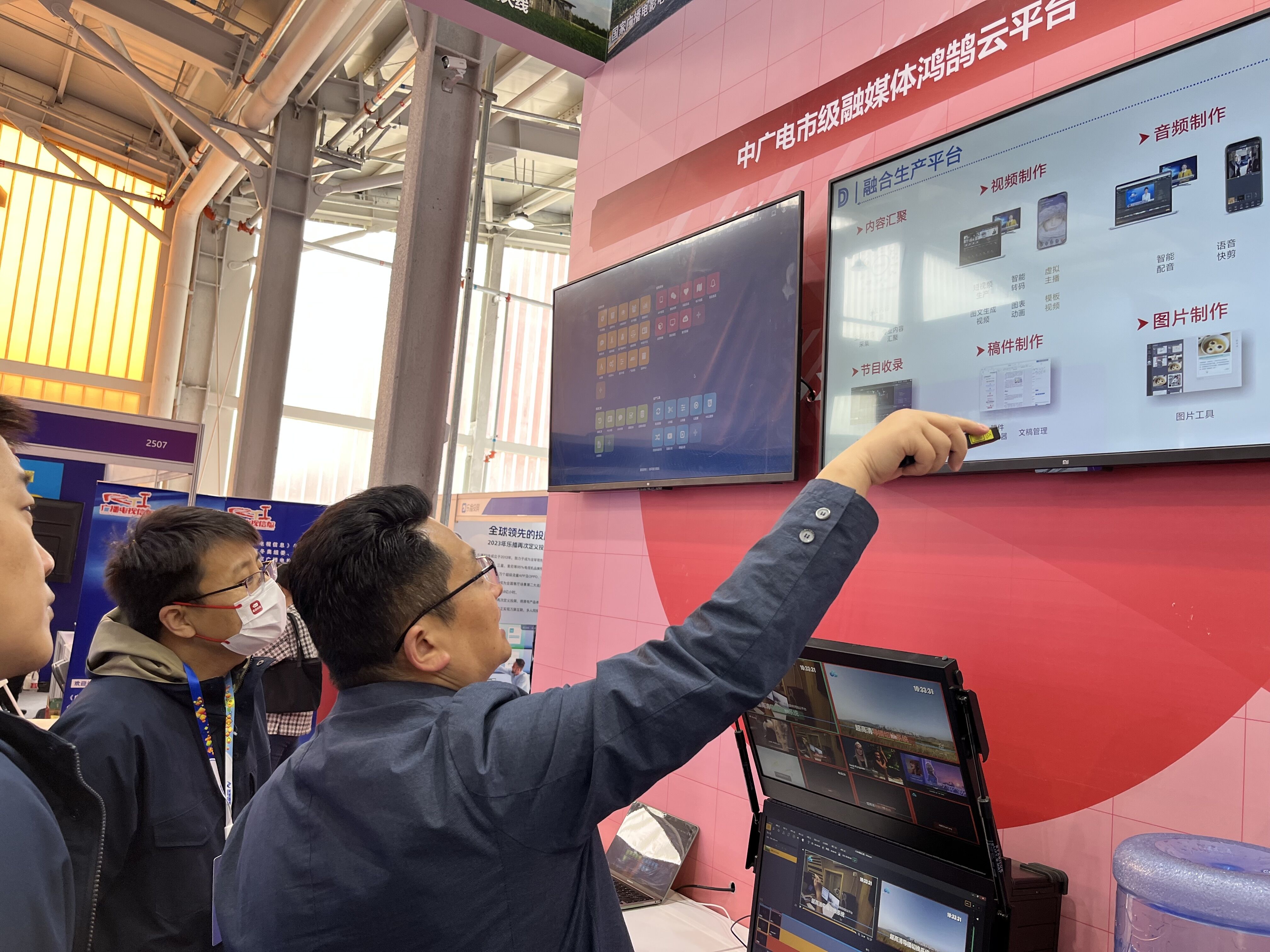 展会上,鸿鹄云盛装亮相。鸿鹄云是国家广电总局中广电设计院按照市级融媒体建设标准倾力打造的融媒体云平台,鸿鹄云搭载强大的智能低代码快速开发引擎,具备人工智能、媒体内容管理、媒体处理、应用快速开发等核心能力。