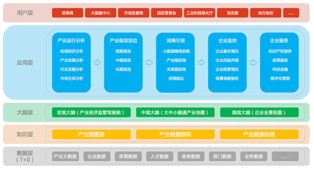 泰德网聚的产业大脑采用“AI+大数据”技术模式,助力产业实现高质量发展。产业大脑方案系统包括行业运行分析、产业规划定位、招商引资、企业监控和企业服务等模块。通过智能化数据收集及处理分析,系统可帮助企业更好地了解经济环境,市场、产业趋势等外部信息,并结合企业自身信息泰德通过“大数据+AI”全面分析产业发展情况,智能化生成产业链图谱、产业地图等可视化分析成果,为产业定位和产业规划提供数据支撑和决策依据。