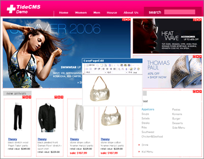 我们为了让整个网站的任何页面、任何板块的管理能够变的更方便更直接,我们推出了EasyPageEdit™(页面编辑管理)功能,通过这个强大功能你可以直接在浏览网页的时候通过我们的工具管理你看到的一切。比如调整导航、管理首页的信息板块、管理一段Flash的图片等。